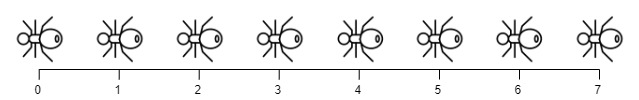 -The ant at index 0 is named A and going to the right.