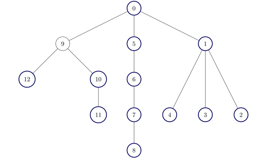 Input: edges = [[0,1],[1,2],[1,3],[1,4],[0,5],[5,6],[6,7],[7,8],[0,9],[9,10],[9,12],[10,11]]